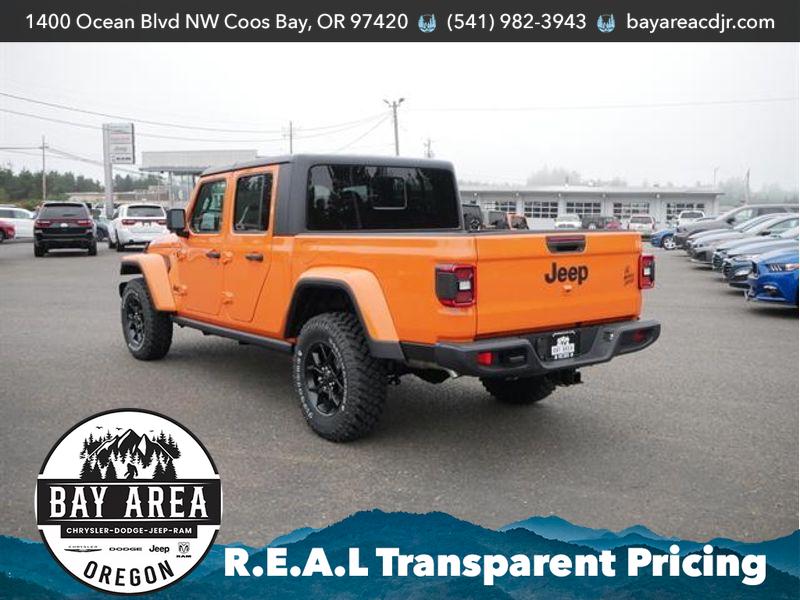 Convenience Group: Emergency/assistance Call; Front Door Locks 2-Door Passive Entry; Remote Start System; Universal Garage Door Opener; Daytime Running Lamp System; Heated Front Seats; Heated Steering Wheel; Corning Gorilla Glass. Safety Group: Auto High Beam Headlamp Control; Blind Spot and Cross Path Detection; LED Taillamps; ParkSense Rear Park Assist System. Technology Group: Google Android Auto; SiriusXM Radio Service; 12.3 Touchscreen Display; USB Host Flip; 400W Inverter; HD Radio; Integrated Center Stack Radio; Rear View Auto Dim Mirror; Bluetooth Wireless Speaker; Integrated Voice Command with Bluetooth; Connectivity - US/Canada; Uconnect 5 Navigation with 12.3 Display; GPS Navigation; 4G LTE Wi-Fi Hot Spot; GPS Antenna Input; Media Hub with 2 Charge Only USBs; SiriusXM with 360L; 115V Auxiliary Power Outlet; Connected Travel and Traffic Services; Alexa Built-In; Apple CarPlay. Quick Order Package 24W Willys: LED Taillamps; Protection Sill Rails; 4-Wheel Drive Decal; Black Grille; MOPAR All-Weather Slush Mats; LT255/75R17C OWL On/off Road Tires; 2-Piece Body Color Fender Flares; Front Heavy Duty Red Accent Shock Absorbers; Daytime Running Lamps LED Accents; Front LED Fog Lamps; LED Premium Reflector Headlamps; E-Locker Rear Axle; Trailer Hitch Zoom; Class IV Receiver Hitch; Security Alarm; Mold in Color Bumper with Gloss Black; Advanced Brake Assist; Willys Suspension; Heavy Duty Engine Cooling; Automatic Headlamps; Air Conditioning with Auto Temp Control; Deep Tint Sunscreen Windows; Off-Road Plus Mode; 17 X 7.5 Painted Black Wheels; Willys Hood Decal; Full Speed Forward Collision Warning Plus; Rear Heavy Duty Red Accent Shock Absorbers; Front Door Locks 2-Door Passive Entry; Cluster 7.0 TFT Color Display; Power Heated Mirrors; Enhanced Adaptive Cruise Control; Auxiliary Switches; Premium Wrapped Steering Wheel; Sun Visors with Illuminated Vanity Mirrors. Black 3-Piece Hard Top. Alpine Premium Audio System. Joose. MOPAR Spray in Bedliner. Locking Lug Nuts. **Equipment listed is based on original vehicle build and subject to change. Please confirm the accuracy of the included equipment by calling the dealer prior to purchase.**