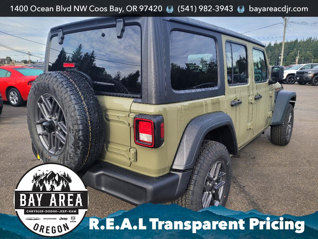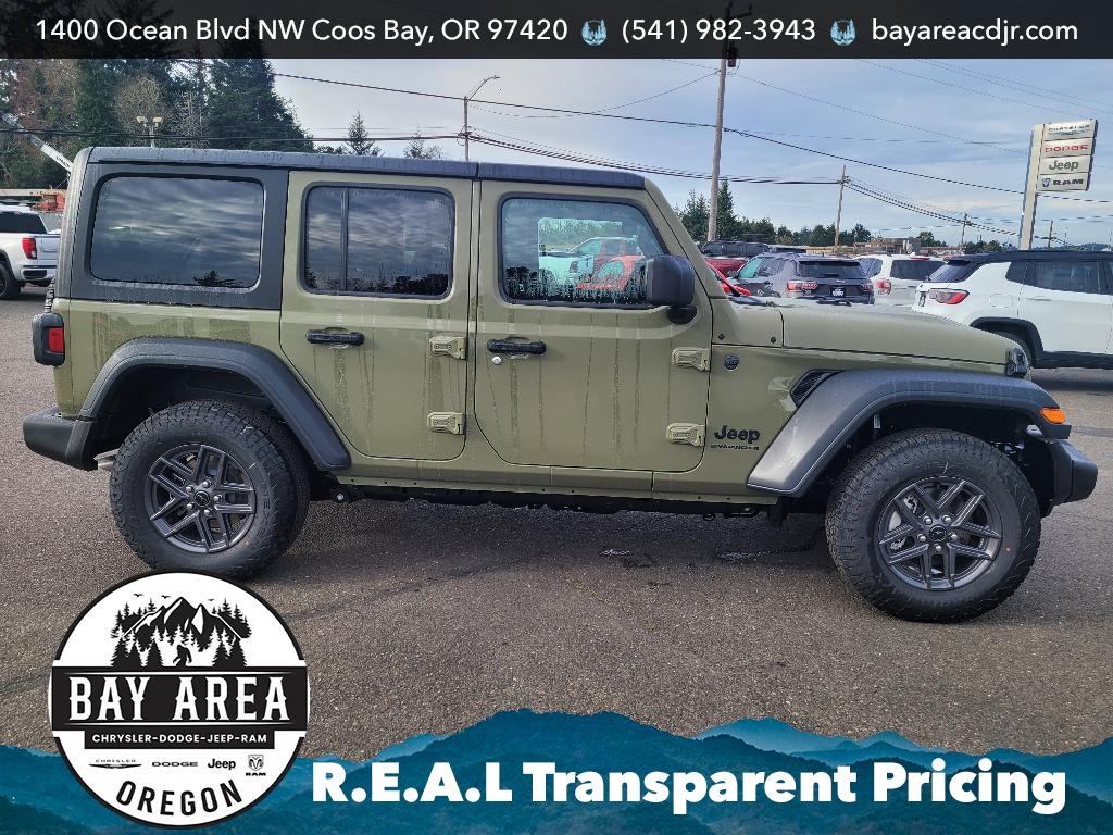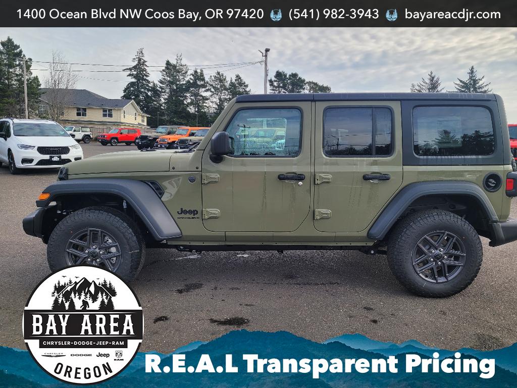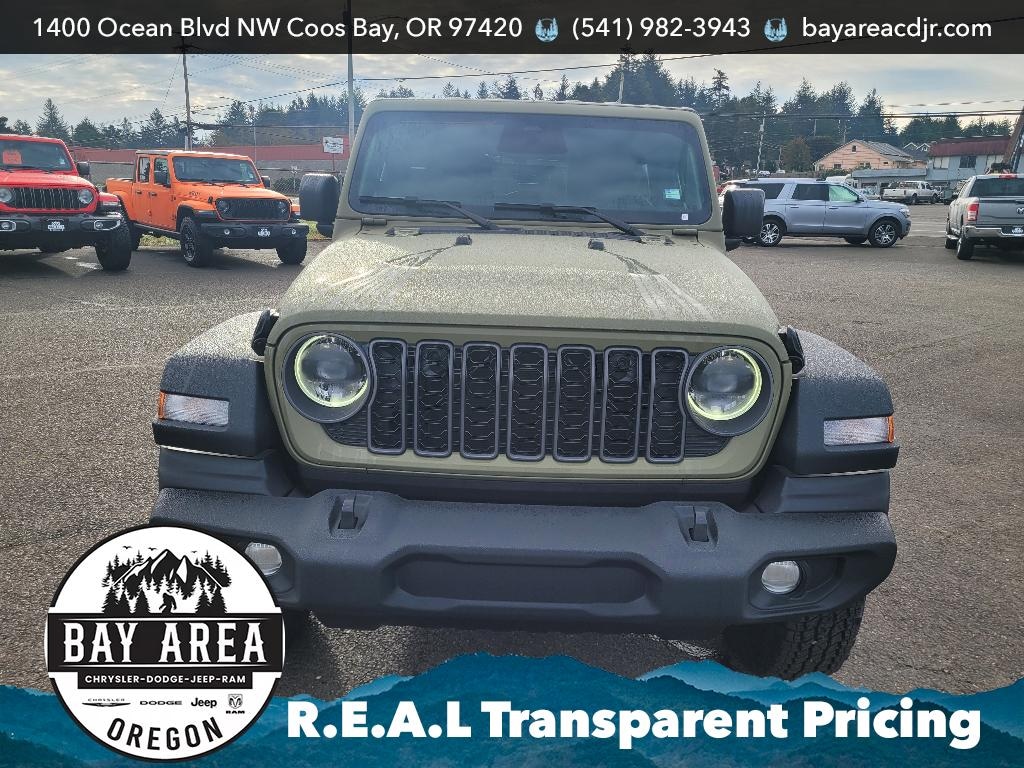 2026 Jeep Wrangler Sport S 4WD â" V6, 3.6L Gasoline â" Coos Bay, OR This 2026 Jeep Wrangler Sport S pairs rugged capability with modern comfort, powered by a reliable V6 3.6L gasoline engine and proven 4WD for confident handling on coastal roads and off-road trails. Located in Coos Bay, OR, this Jeep Wrangler Sport S delivers legendary trail capability while offering daily-drive convenience and technology. Interior comfort features include a heated steering wheel for chilly Oregon mornings and hands-free Bluetooth for seamless phone and audio connectivity. Remote start ensures the cabin is ready before you step outside, and Android Auto keeps navigation and apps accessible through the infotainment system. Adaptive cruise control enhances highway driving by maintaining set distances for relaxed, safer travel. Designed for drivers who value both utility and comfort, this Jeep Wrangler Sport S includes durable seating and user-friendly controls that stand up to active lifestyles. Safety-focused features and modern driver assists provide peace of mind whether commuting or exploring coastal backroads. Priced competitively in Coos Bay, this 2026 Jeep Wrangler Sport S represents the best price available for a vehicle with this mix of equipment and capability. Contact us to arrange a test drive or for more details on financing options and availability. Your next adventure-ready Jeep awaits in Coos Bay, Oregon.