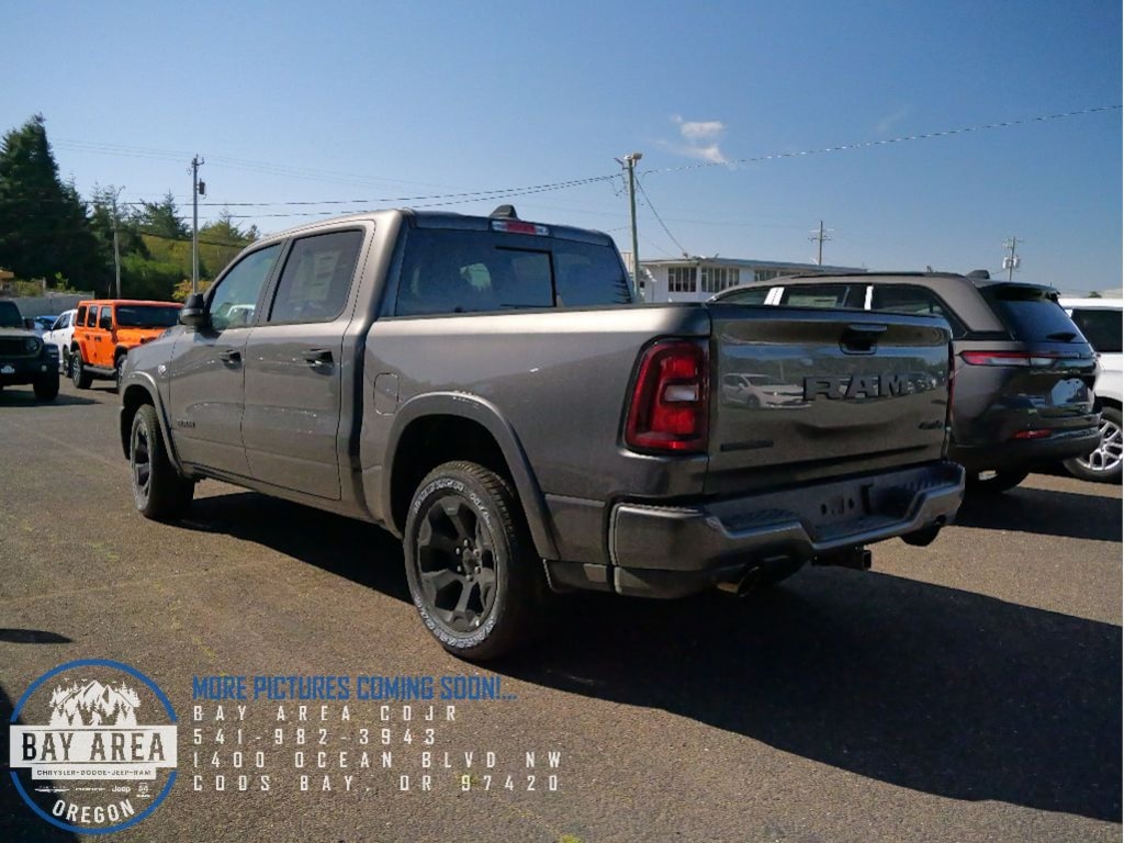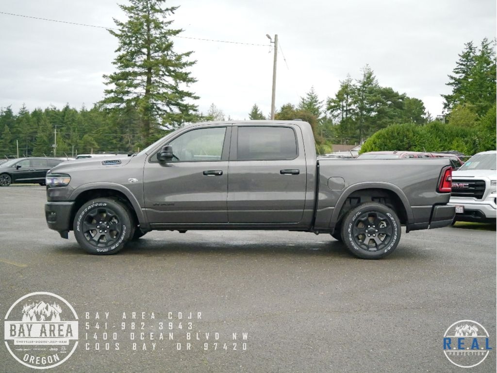 Quick Order Package 27Z Big Horn. Big Horn Level 2 Equipment Group: Google Android Auto; SiriusXM Radio Service; USB Host Flip; Power Adjustable Pedals; Leather Wrapped Steering Wheel; Integrated Voice Command with Bluetooth; 12 Touchscreen Display; Glove Box Lamp; Auto Power-Folding Mirrors; 115V Auxiliary Rear Power Outlet; Media Hub with 2 Charge Only USBs; Heated Front Seats; Security Alarm; Black Premium Power Mirrors; Apple CarPlay; Premium Overhead Console; 9 Amplified Speakers with Subwoofer; Disassociated Touchscreen Display; Secondary Active Grille Shutters; Wireless Charging Pad; Body Color Fender Flares; Remote Tailgate Release; 115V Auxiliary Power Outlet; LED Dome Lamp with On/off Switch; Universal Garage Door Opener; 2nd Row in Floor Storage Bins; Sun Visors with Illuminated Vanity Mirrors; LED Footwell Lighting; Rear Window Defroster; Integrated Center Stack Radio; Rear View Auto Dim Mirror; Rear Power Sliding Window; Connectivity - US/Canada; GPS Navigation; 4G LTE Wi-Fi Hot Spot; GPS Antenna Input; Overhead LED Lamps; Exterior Mirrors with Heating Element; Auto Dim Exterior Driver Mirror; SiriusXM with 360L; Global Telematics Box Module; Connected Travel and Traffic Services; Heated Steering Wheel; Configurable Drive Mode; 400W Inverter; HD Radio; Deluxe Cloth Bucket Seats; Uconnect 5 Navigation with 12.0 Display Radio; Exterior Mirrors with Supplemental Signals; Steering Wheel Mounted Audio Controls; Exterior Mirrors Courtesy Lamps; Air Conditioning ATC with Dual Zone Control; Cluster 7.0 TFT Color Display; Convex Wide-Angle Exterior Mirror Insert. Night Edition: 275/55R20 OWL All Season Tires; Accent Color Premium Power Mirrors; Exterior Mirrors with Supplemental Signals; Black Headlamp Bezels; Exterior Mirrors Courtesy Lamps; Grille Black Surround Black Mesh; Auto Power-Folding Mirrors; Exterior Mirrors with Heating Element; 20 X 9.0 Aluminum Painted Clad Wheels; Auto Dim Exterior Driver Mirror; Black Exterior Truck Badging; Anti-Spin Differential Rear Axle; Accent Color Door Handles; Accent Color Tailgate Handle; Black Interior Accents; Dual Exhaust with Black Tips; Body Color Front Bumper; Convex Wide-Angle Exterior Mirror Insert; Body Color Rear Bumper with Step Pads; Black Tail Lamp Bezels; RAM Grille Badge - Black; Black Painted Exterior Mirrors Caps. 9 Amplified Speakers with Subwoofer. Anti-Spin Differential Rear Axle. 33 Gallon Fuel Tank. Granite Crystal Met CC. MOPAR Front and Rear Rubber Floor Mats. 3.92 Rear Axle Ratio. Rear Wheelhouse Liners. **Equipment listed is based on original vehicle build and subject to change. Please confirm the accuracy of the included equipment by calling the dealer prior to purchase.**