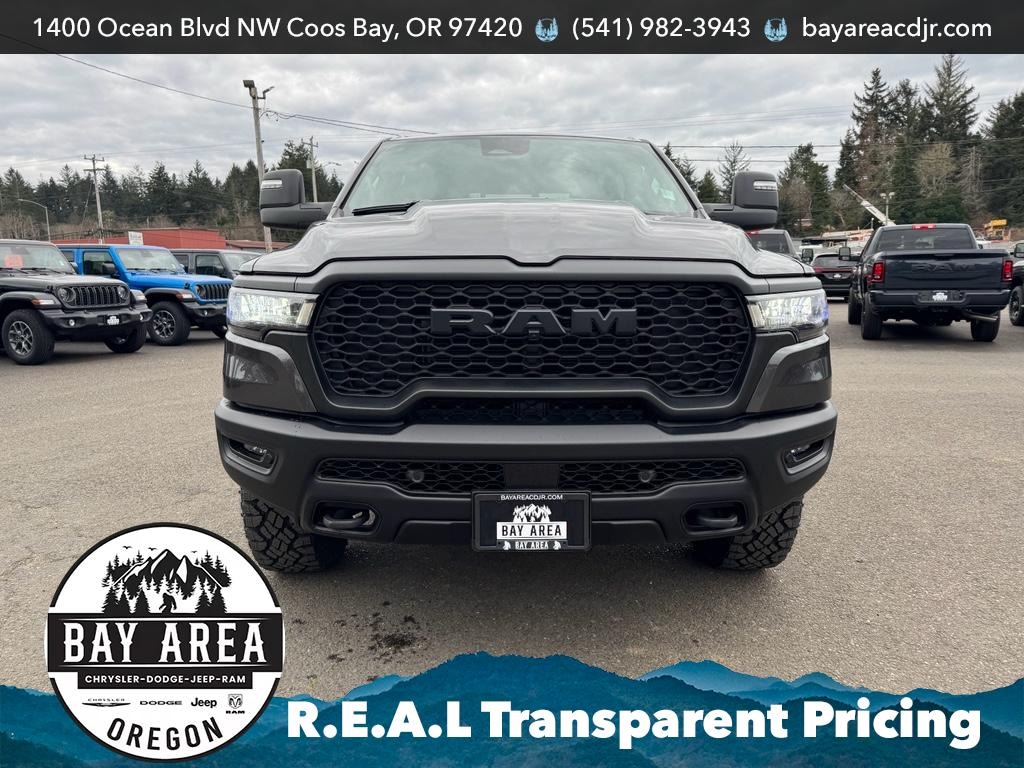 Discover the 2026 Ram 1500 Rebel 4WD with a powerful 6-cylinder 3.0L gasoline engine, now available in Coos Bay, OR. Built for rugged reliability and confident performance, this Rebel combines off-road capability with refined comfort. Whether you're towing, commuting, or exploring the Oregon coast, the 4WD system and responsive 3.0L engine deliver strong acceleration, efficient highway cruising, and impressive handling in varied conditions. This Rebel comes loaded with desirable tech and convenience features: Forward Collision Warning for added safety, Remote Start to warm up or cool down the cabin before you climb in, and a Back-Up Camera to simplify parking and hitching trailers. Enjoy superior in-cabin sound with a Premium Sound System and relax in handcrafted Leather Seats that provide both comfort and durability for long drives. Located in Coos Bay, OR, this 2026 Ram 1500 Rebel is priced below competing local listings â" the best price available for a vehicle of this trim and condition. Don't miss your chance to own a capable, stylish, and feature-packed truck built for adventure and everyday use. Contact us today to schedule a test drive or request more details â" this Rebel won't stay on the lot long.