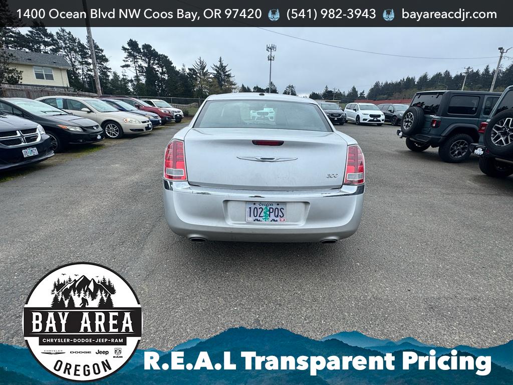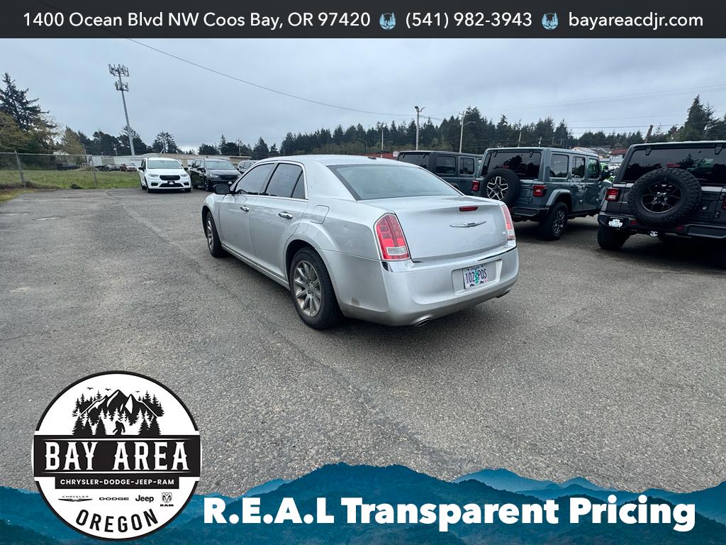 2012 Chrysler 300 Limited - a stylish, comfortable sedan located in Coos Bay, OR - combines refined design with strong V6 performance. Equipped with a 3.6L V6 gasoline engine and rear-wheel drive, this Chrysler 300 Limited delivers confident acceleration and a balanced ride for highway cruising or coastal drives. The interior features premium leather seats that provide comfort and support for daily commuting and longer trips, while tasteful trim and roomy rear seating enhance passenger comfort. This example comes with premium wheels that elevate both appearance and handling. Stay entertained and informed with XM Satellite Radio, offering a wide range of stations and content for every preference. Additional peace of mind comes with a CARFAX Clean Report, documenting the vehicle's history and supporting its well-maintained condition. Practical features and thoughtful amenities make this Chrysler 300 Limited a smart choice for drivers who value a combination of performance and refinement. The vehicle's chassis and RWD setup help deliver classic rear-wheel dynamics, and the V6 provides a satisfying blend of power and efficiency for its class. Located in Coos Bay, OR, this Chrysler 300 is ready for local test drives and inspection. Schedule a viewing to experience the refined interior, smooth V6 performance, and premium features in person - a confident, well-equipped sedan option for discerning buyers.