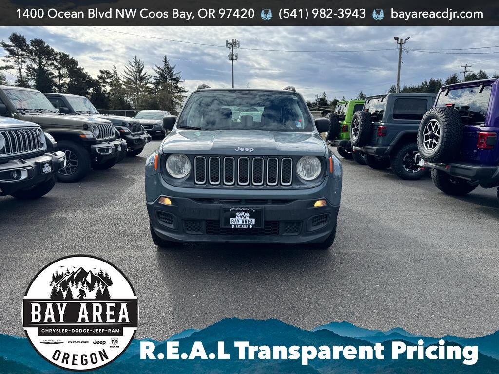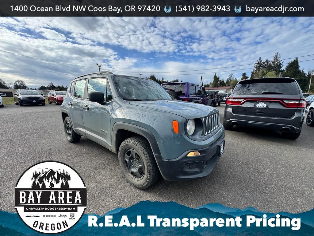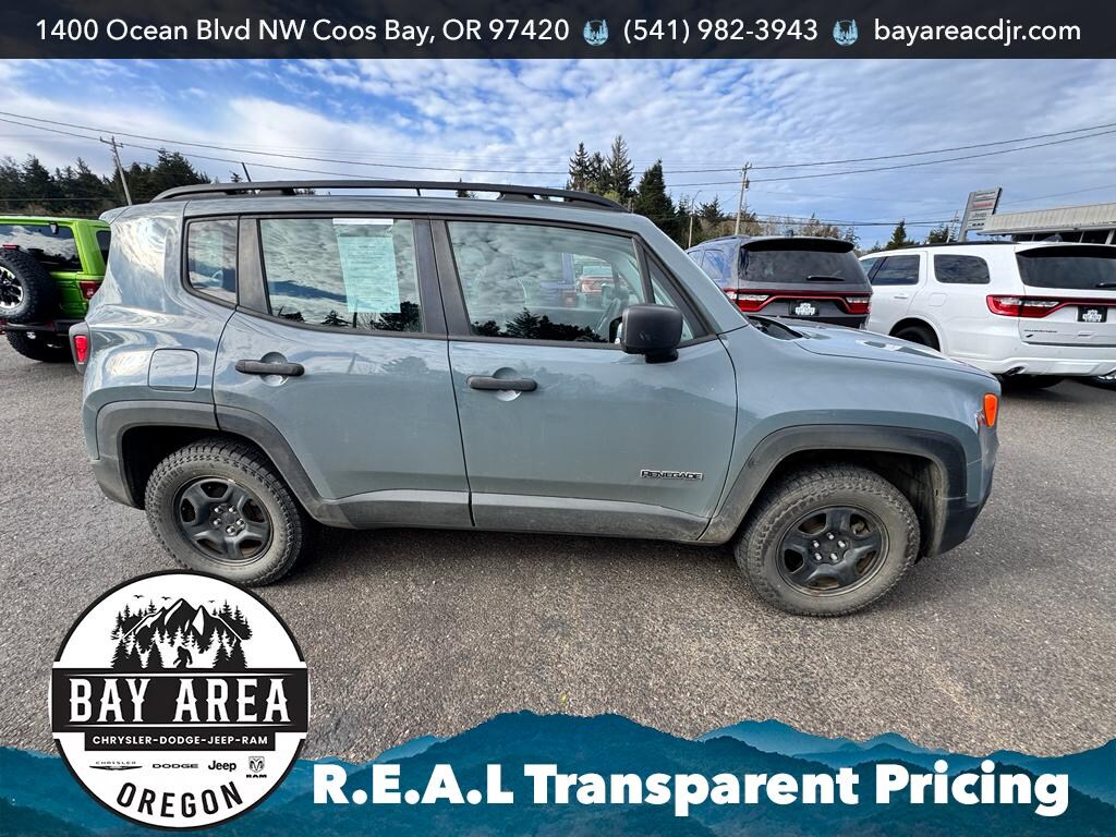 2018 Jeep Renegade Sport 4WD with a 2.4L 4-cylinder gasoline engine â€" the compact SUV that blends capability and efficiency for Pacific Northwest driving. Located in Coos Bay, OR, this Jeep Renegade Sport offers confident four-wheel drive traction for coastal roads and rugged backcountry, plus a responsive 2.4L engine that balances power and fuel economy. Thoughtful features include a Back-Up Camera to simplify parking and maneuvering, and Hands Free Bluetooth for safer calls and audio streaming on the go. The cabin delivers a comfortable, practical layout with durable materials and intuitive controls. Compact exterior dimensions make city driving and tight parking easy, while the elevated stance and 4WD system provide extra confidence when conditions turn challenging. This Jeep Renegade Sport is well-suited for commuters, outdoor enthusiasts, and small families looking for versatile utility without excess size. Priced to move with the best price in the area, this vehicle represents excellent value for buyers seeking capability and modern conveniences in a pre-owned SUV. Routine maintenance has been performed to keep it reliable and ready for immediate use. Schedule a test drive in Coos Bay, OR, to experience the Jeep Renegade's nimble handling, practical features, and 4WD capability firsthand. Financing and extended service options are available to qualified buyers.