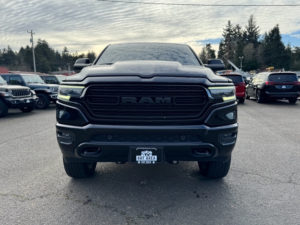 Black Appearance Package: 22 X 9 Black Aluminum Wheels; Tri-Fold Tonneau Cover; Black Headlamp Bezels; Body Color Premium Power Mirrors; Sport Performance Hood; Body Color Door Handles; 285/45R22XL BSW All Season Tires; Harman/kardon 19 Speaker Premium Sound; Black Exterior Truck Badging; Black Day Light Opening Moldings; Tow Hooks; Body Color Exterior Mirrors; Dual Exhaust with Black Tips; Body Color Front Bumper; Black Grille Surround Texture 7 Chrome; Body Color Rear Bumper with Step Pads; RAM Grille Badge - Black. Quick Order Package 25M Limited. Limited Level 1 Equipment Group: Adaptive Cruise Control with Stop and Go; Parallel and Perp Park Assist with Stop; Ventilated Rear Seats; Full Speed Forward Collision Warning Plus; Lane Keep Assist. Bed Utility Group: Truck Bed Cargo Divider; Deployable Bed Step; 4 Adjustable Cargo Tie-Down Hooks; Pick-Up Box Lighting. Protection Group: Steering Gear Skid Plate; Transfer Case Skid Plate; Front Suspension Skid Plate; Fuel Tank Skid Plate. Trailer Tow Group: Trailer Brake Control; Black Trailer Tow Power Mirrors. Dual-Pane Panoramic Sunroof. Multi-Function Tailgate. RamBox Cargo Management System. Tri-Fold Tonneau Cover. Anti-Spin Differential Rear Axle. 33 Gallon Fuel Tank. Trailer Brake Control. Diamond Black Crystal PC. **Equipment listed is based on original vehicle build and subject to change. Please confirm the accuracy of the included equipment by calling the dealer prior to purchase.**